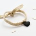 Bracelet à nouer en coton recyclé beige doré, avec pendentif cœur en argile polymère noir.