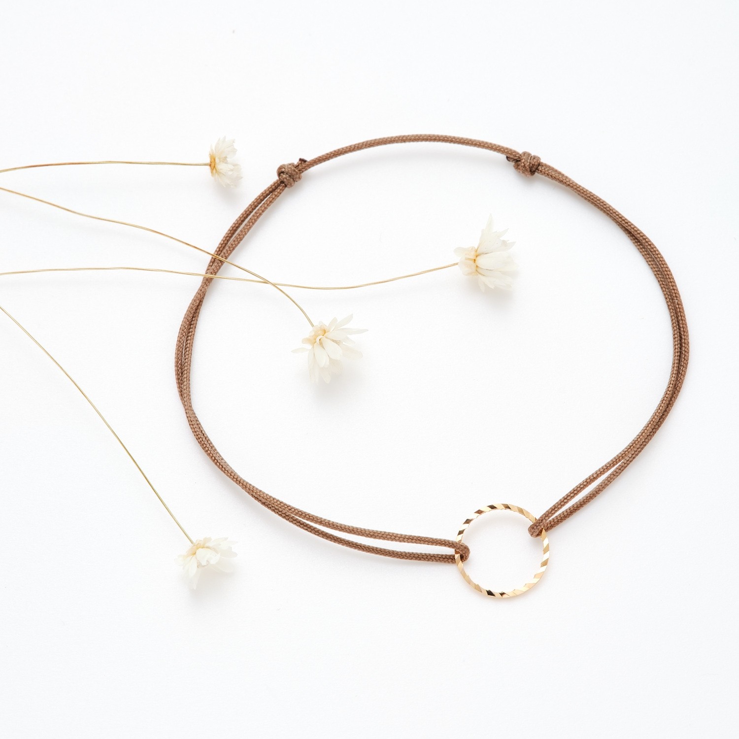 Bracelet coulissant (16 couleurs au choix) avec rond en laiton doré