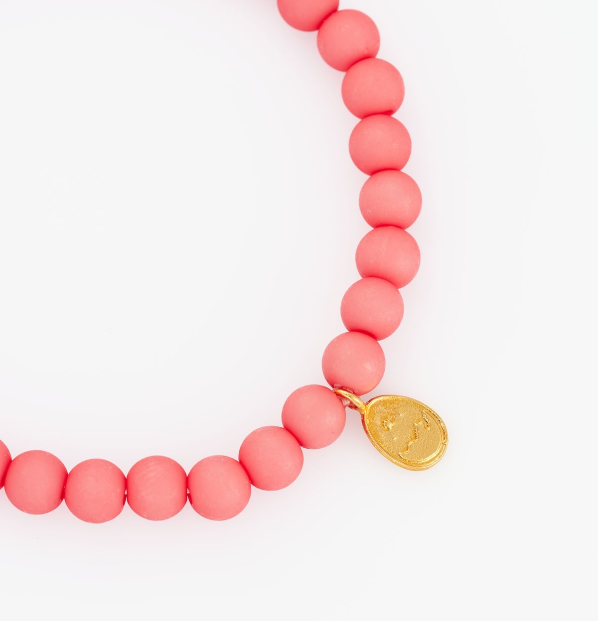 Le bracelet Bubble en perles de résine mate rose de 6 mm, disponible en 15 coloris. Idéal à porter seul ou en accumulation pour un style personnalisé