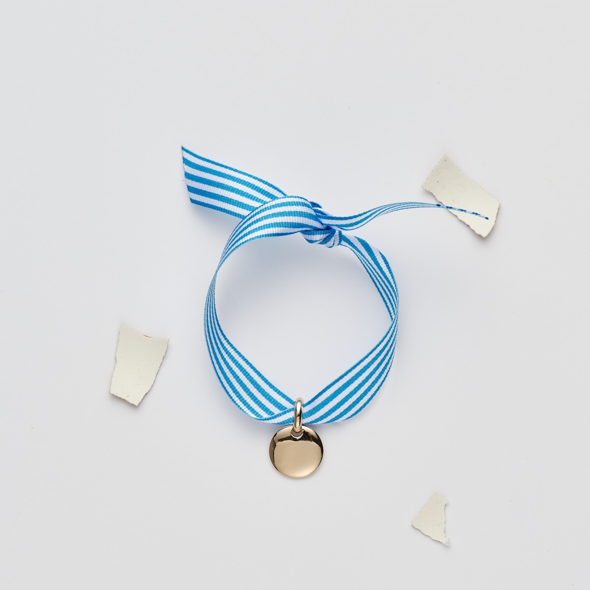 Bracelet Cabane, Bracelet en ruban à nouer 9 mm de couleur et pendentif en plaqué or 3 microns. Fabriqué au poulailler et caché dans un oeuf de poule l'Eggstra.
