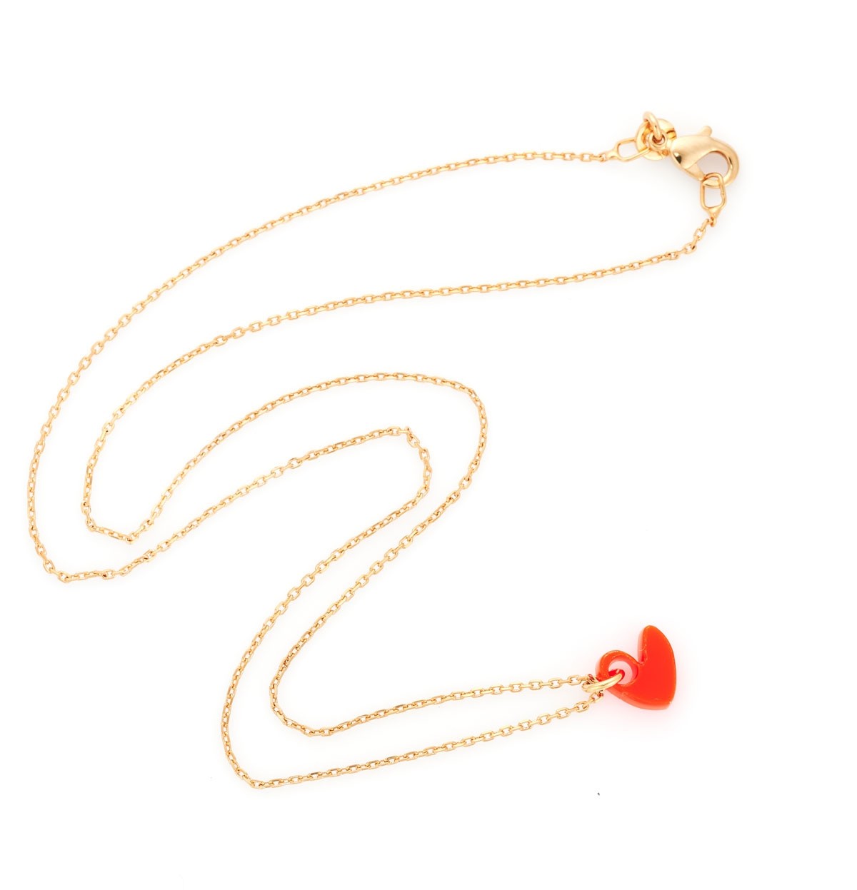 Ajoutez une touche de gaieté à votre style avec le Collier Yves orange fluo. Ce bijou élégant présente un pendentif en forme de cœur en acrylique, délicatement monté sur une chaîne en plaqué or de 42 cm. Conçu pour illuminer vos tenues, ce collier polyvalent est parfait pour rehausser à la fois vos looks d'hiver et d'été. Avec son design charmant et coloré, le Collier Yves orange fluo est l'accessoire idéal pour apporter une note joyeuse et élégante à votre quotidien.
