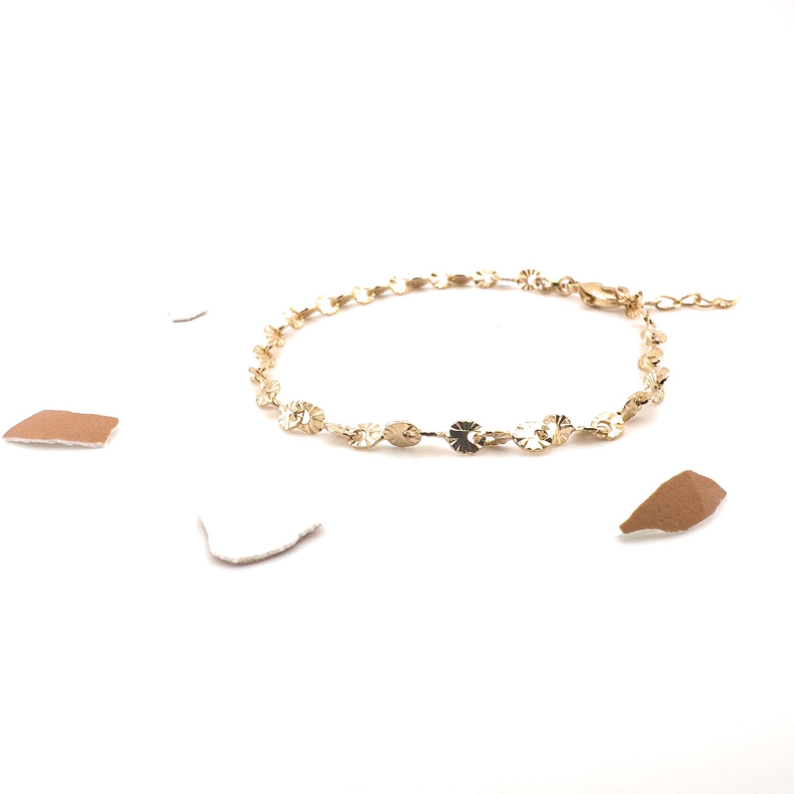 Le bracelet Mona, un bracelet doux et rafffiné à la chaîne soleil en laiton plaqué or 3 microns.