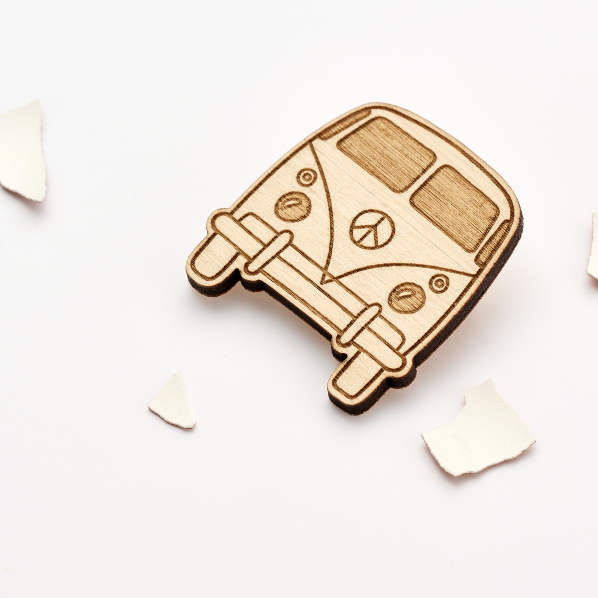 La broche bois COMBI 100% MADE in France. Cette broche est fabriquée en bois, avec une attache métallique.