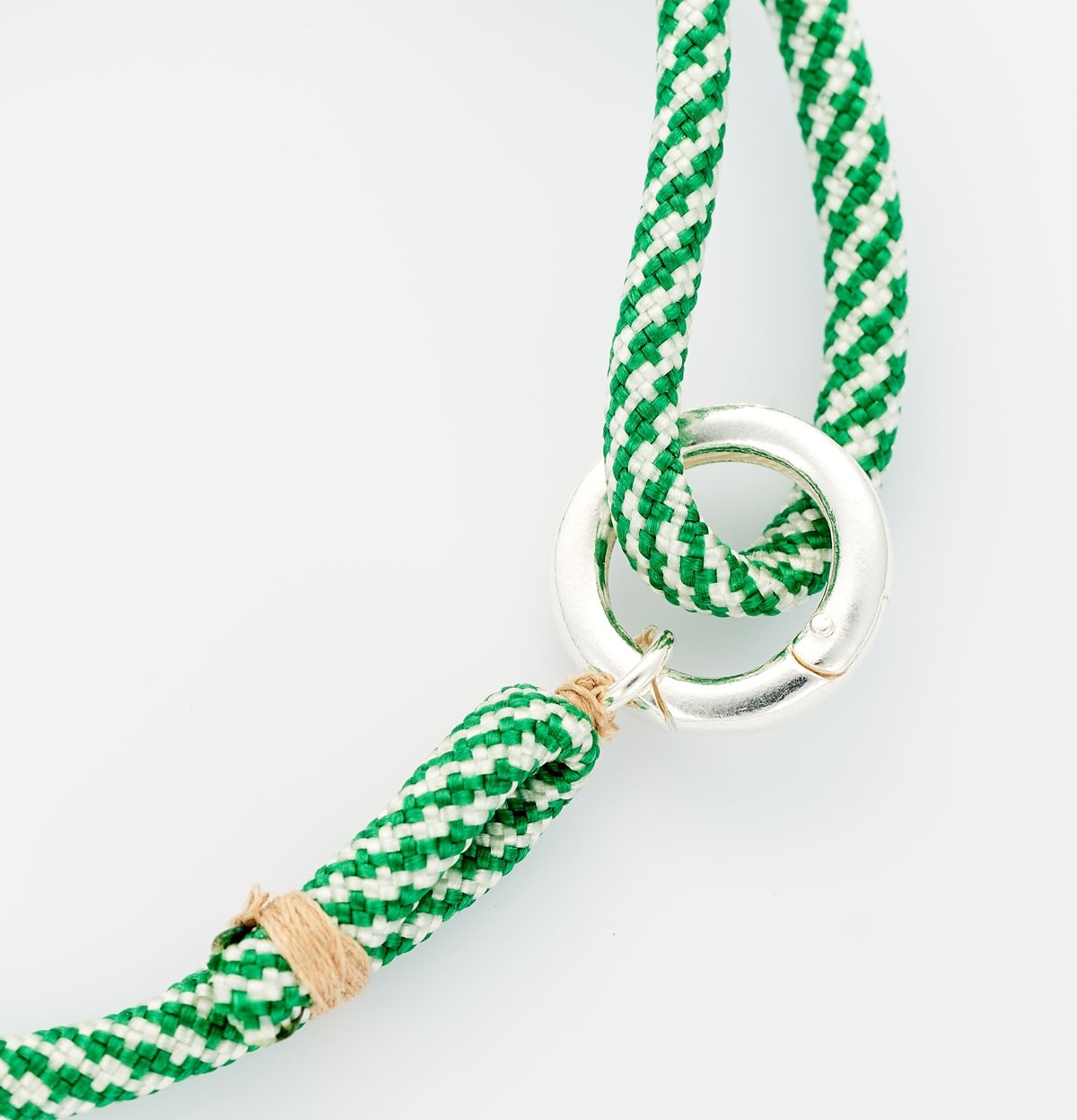 Le bracelet est fait de paracorde résistante, connue pour sa durabilité, tout en restant légère et confortable à porter au quotidien. Son fermoir mousqueton en argent 925 apporte une finition haut de gamme, assurant à la fois sécurité et élégance.